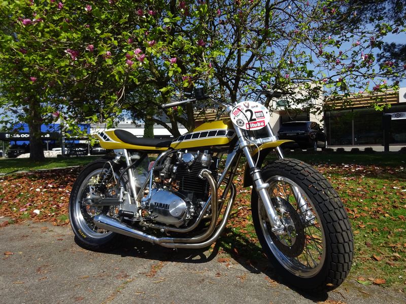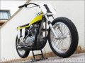 Ce type de moto ne comporte pas de frein avant, et une partie cycle spécialement élaborée pour la discipline du flat track ou dirt track…(Not for road use)