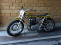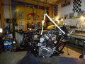 Cadre spécial flat track, aux tubes chrome-molly, fourche type Ceriani, roues à rayons, jante 19" Borani, frein arrière à disque Brembo 300mm. Amortisseurs Bitubo. ensemble selle réservoir en fibre de verre...